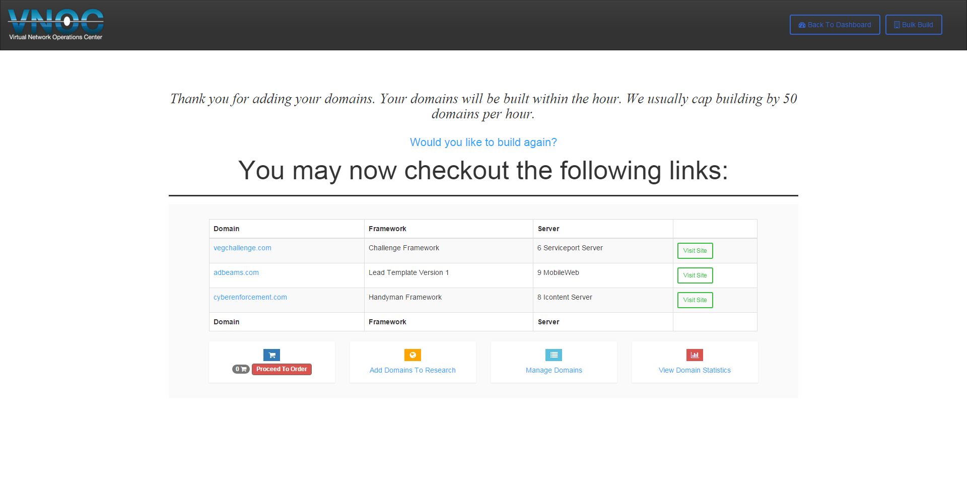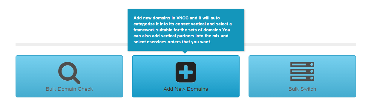 To add new domains which are not yet in VNOC database, from Main Dashboard click “ Add New Domain”.