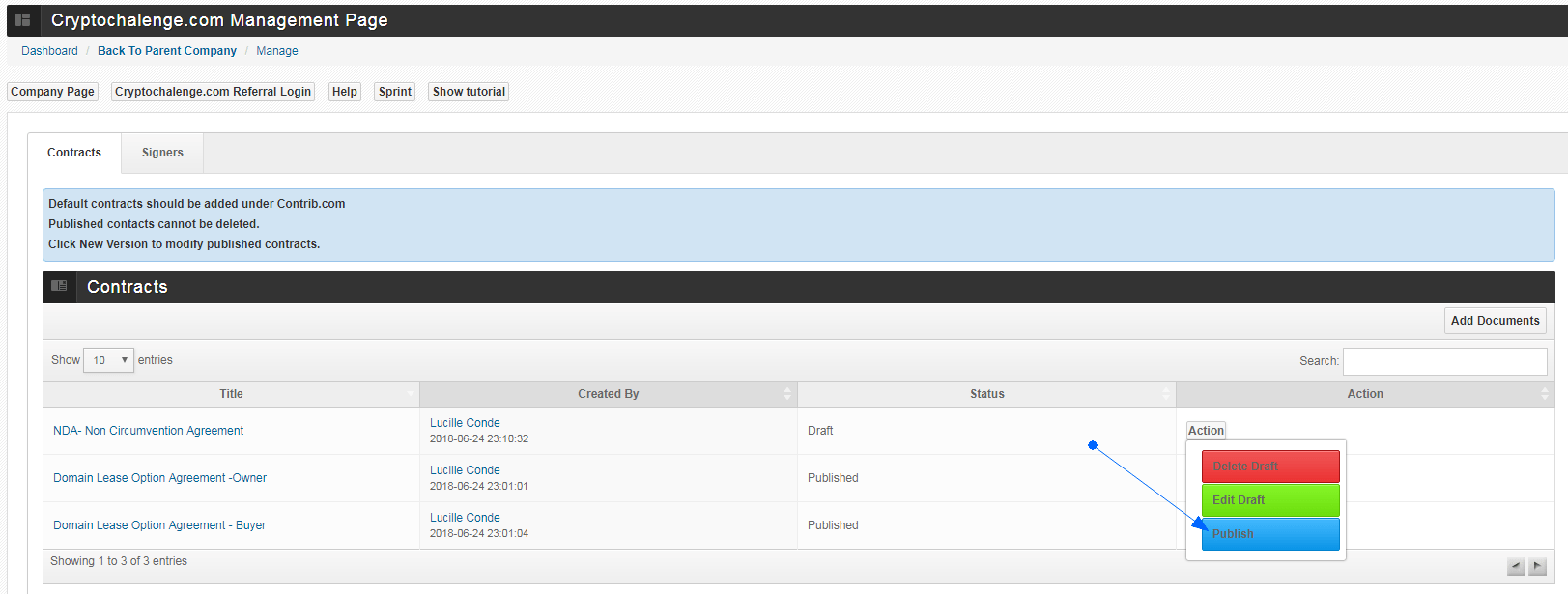 Step 5. Click Publish and your contract or file is now added to Pactsafe.