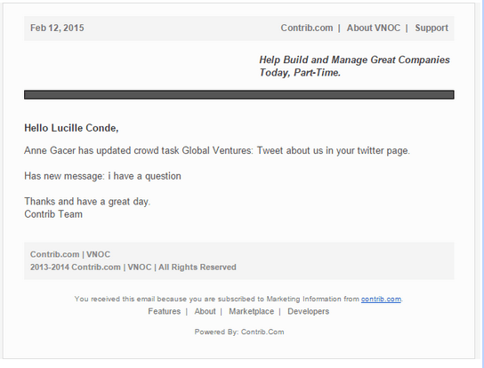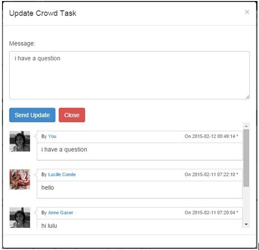 The applicant will send an update about the task. From Contrib -> click Crowd Task menu.