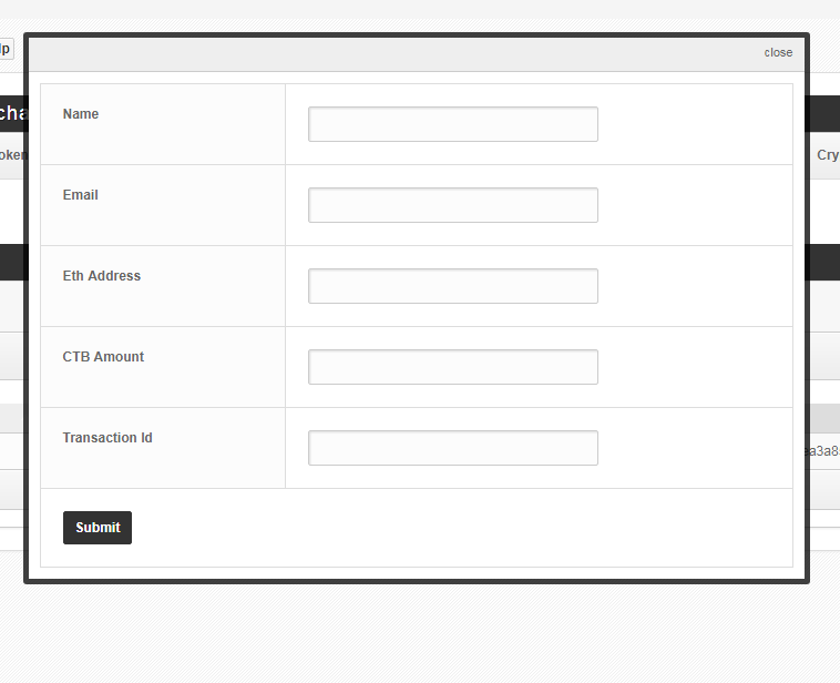 Send CTB to Partnes Click Add Transaction button. Fill up form: Name Email Eth Address CTB Amount Transaction Id Submit Tagged:blockchaincrowdfundingcryptocurrencypartners