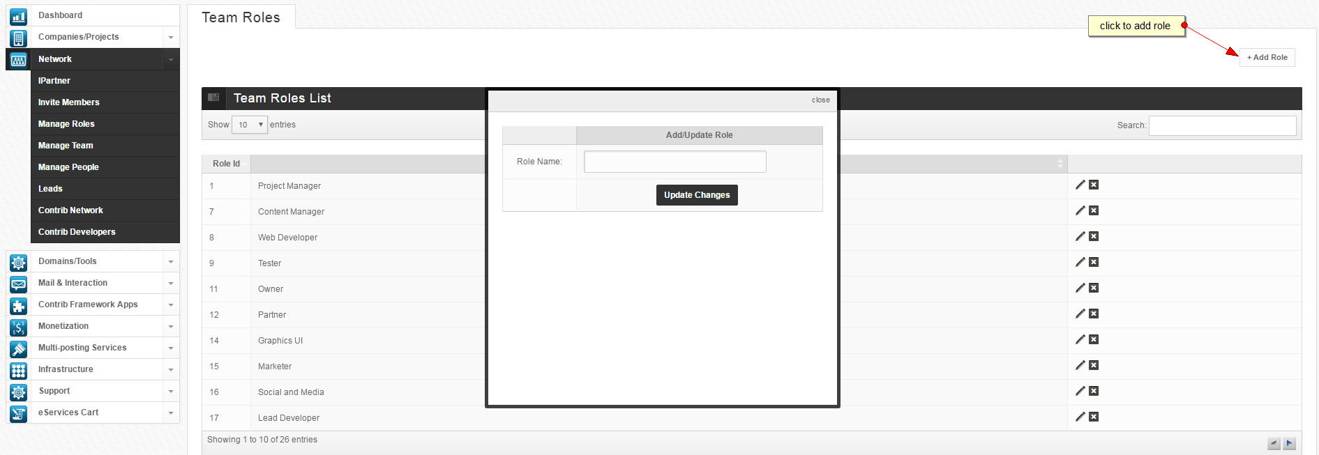Add, edit, update, or delete Team Role/s.