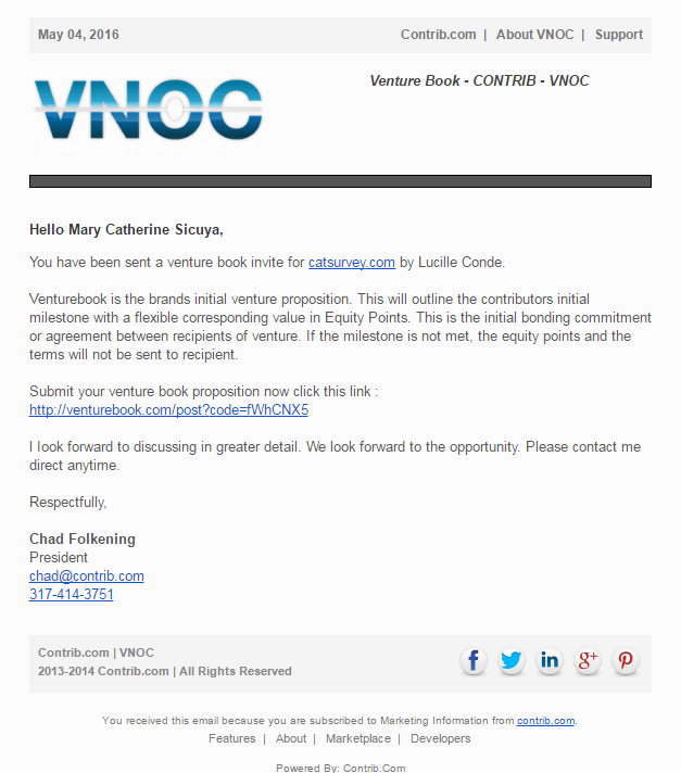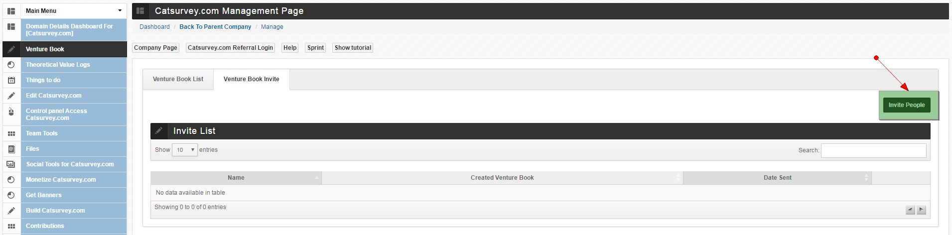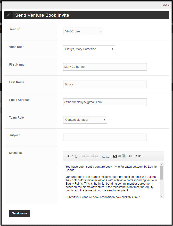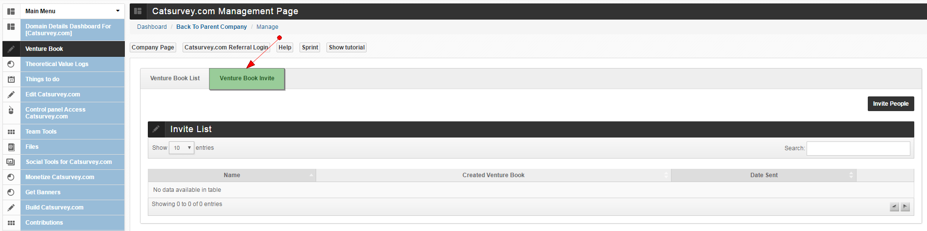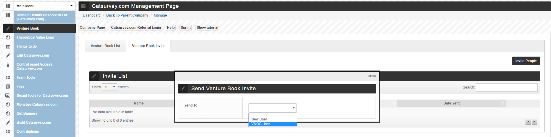 - Go to vnoc domain details page and click Venture Book Menu-> Venture Book Invite Tab
